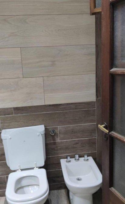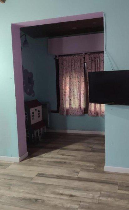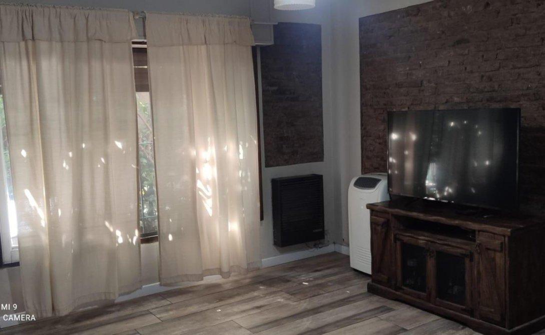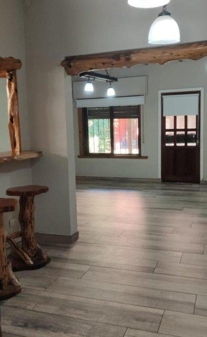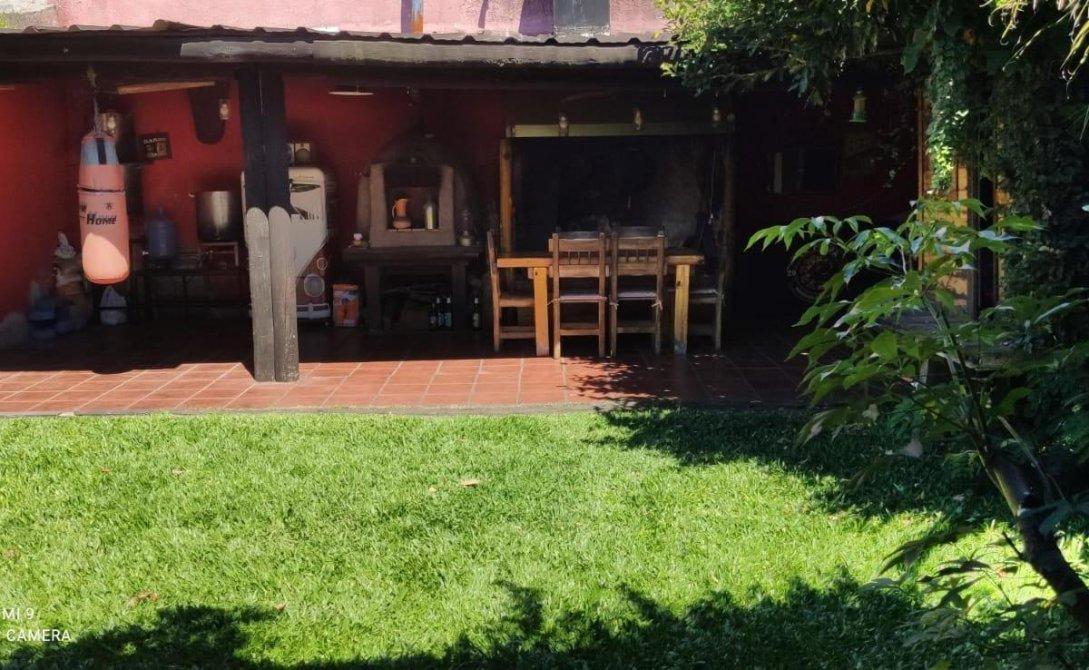 Casa con reja al frente y garage amplio. Hall de entrada, living comedor amplio con cocina integrada, un dormitorio con baño en suite y otro dormitorio de gran tamaño, baño completo con hidromasajes. Toda la propiedad con pisos de porcelanato y en excelente estado. Baños modernos recientemente restaurados. Jardín con galería y lavadero, al fondo quincho con parrilla y horno a leña.