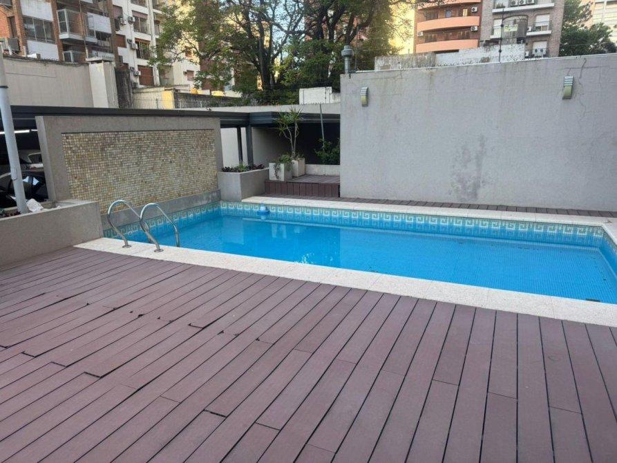 Depto dos ambientes. Cocina completa, con espacio para mesa. Living comedor amplio. Habitación principal con placakard y espacio extra de guardado. Aire acondicionados en todos los ambientes. Amplio balcón. Seguridad 24hs. Laundry. Pileta. Sum y parrilla.